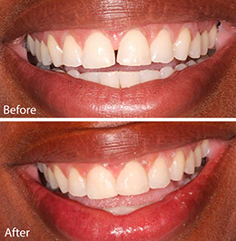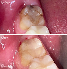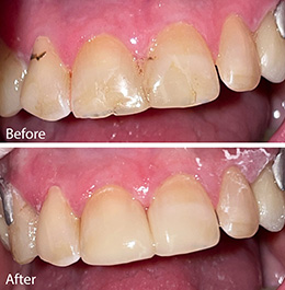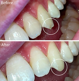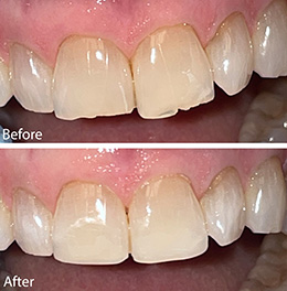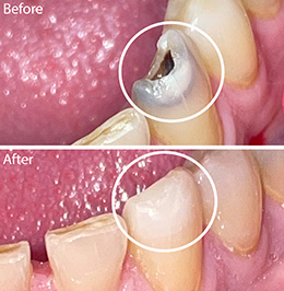 Tooth colored composite resin is expertly placed to repair cosmetic issues such as chips, gaps, and tooth discoloration.